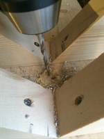 The picture of the drilling machines bottom shows the problem. The drill was no longer lined up with the center. DAMN! I solved the problem with two heavy clamps. This problem will NEVER happen again.
