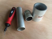 I also found a few tools that make gives a smooth edge on the tubes a real easy task. Those round tools have at one side a internal tool and at the other one the outer tool. The red thing is super easy for internal edges. Getting a tube ready is no longer endless sanding. Now it takes just a few seconds and done.