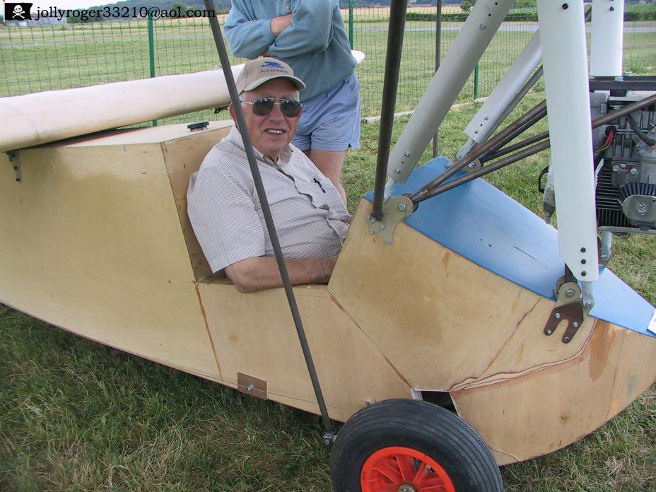 This one looks like a normal HM14, but it isn't. It is a HM14/360. It has the wings of a HM360. Because of the difference in chord Jerome had to make a longer fuselage. And he was wise enough to also use the wider cockpit. The plans for the wider cockpit are mentioned in the section THINGS TO REMEMBER. You can also see that he made the same choice as Bernard Domont by placing the fuel tank behind the pilot. You can also see he used airfoil shaped tubes for the wing support.