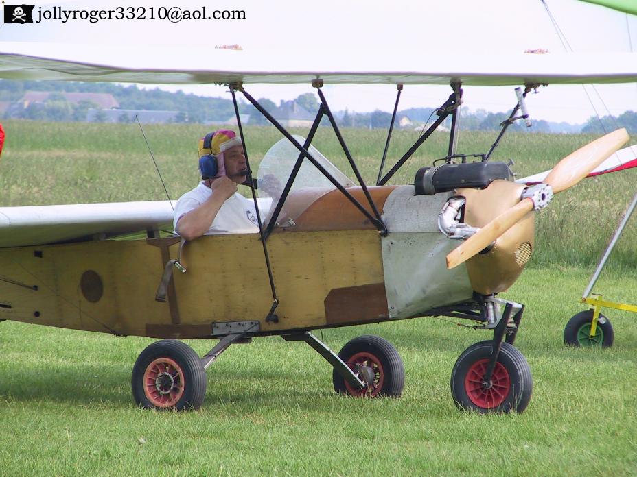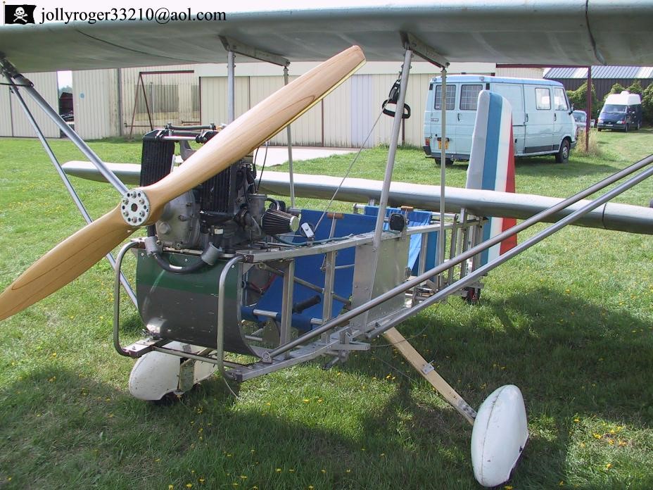 There was not much info about this one. All i recall is that Hans Engels, a engineer that i trust, looked at it and said "he forgot at each side one tube to counter the massive torsion a flying flea fuselage will get. In the last picture you see two known man in the Flying Flea world. Jacques Langlois and Yves Millien.