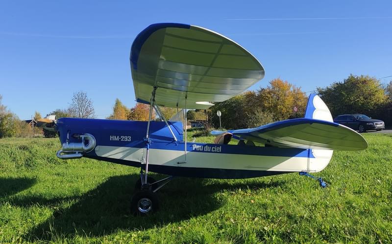 This HM293 is having a Hirth engine. I guess it is a lighter engine than what we usually see on a HM293. So Didier had to place the engine more forwards to keep the CG right. Hence its long nose look. Picture from Jolly Roger website (Jerome Falc)