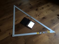 To place the upper tube at the right position i used a angle tool. The traingles is on picture with not my iPhone next to it. No ...that is my iPad. This thing is huuuuge.