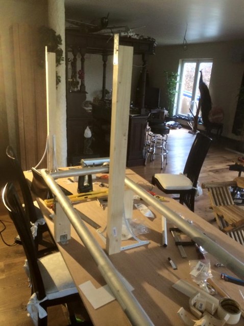 Was busy working on vertical tail. But the tube hit the ceiling. So i need to construct a perfect even table ...with short legs. They don't sell tables like that. I guess that this will keep me busy this weekend together with some family stuff.