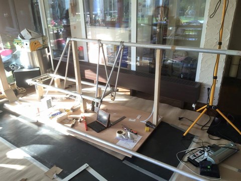 The table gets long arms to hold the upper tube. I used household angles as support, but ...beware ...those are not 90°! I had to use washer to get the angles right.