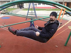I was pleased to get pictures of the prototype of the seat. It was tested in a playground and it was very comfortable. Also the high position of the feet was no problem.