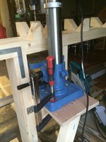 The picture of the drilling machines bottom shows the problem. The drill was no longer lined up with the center. DAMN! I solved the problem with two heavy clamps. This problem will NEVER happen again.