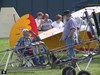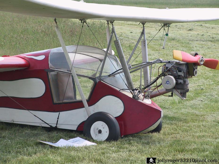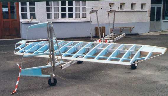 This one looks like a normal HM14, but it isn't. It is a HM14/360. It has the wings of a HM360. Because of the difference in chord Jerome had to make a longer fuselage. And he was wise enough to also use the wider cockpit. The plans for the wider cockpit are mentioned in the section THINGS TO REMEMBER. You can also see that he made the same choice as Bernard Domont by placing the fuel tank behind the pilot. You can also see he used airfoil shaped tubes for the wing support.