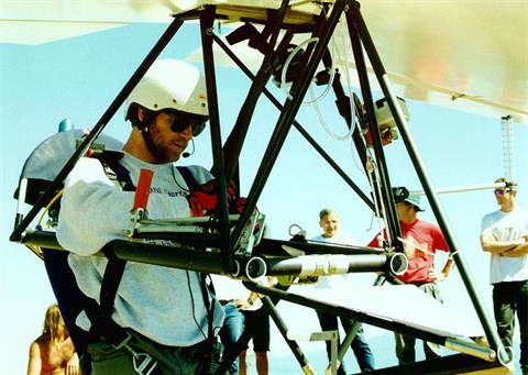 The SWIFT, for SWept Wing with Inboard Flap for Trim, was designed by a team at Stanford University led by Dr. Ilan Kroo, and developed through a collaborative effort with Bright Star Hang Gliders