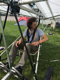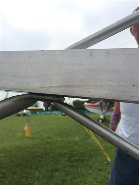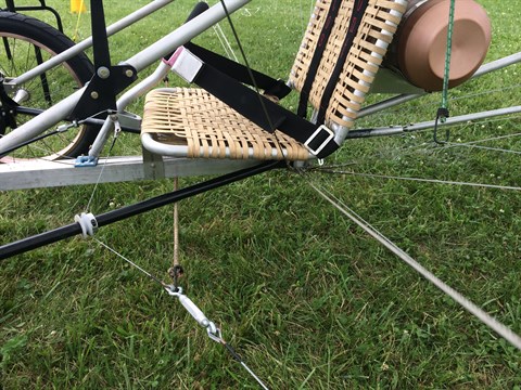 In the next picture you can see a tube with a coupling behind the seat of the pilot. That is Lee's way of getting the push rod of the pitch control towards the elevator. He needed to go under his seat and then back up. He solved it this way.