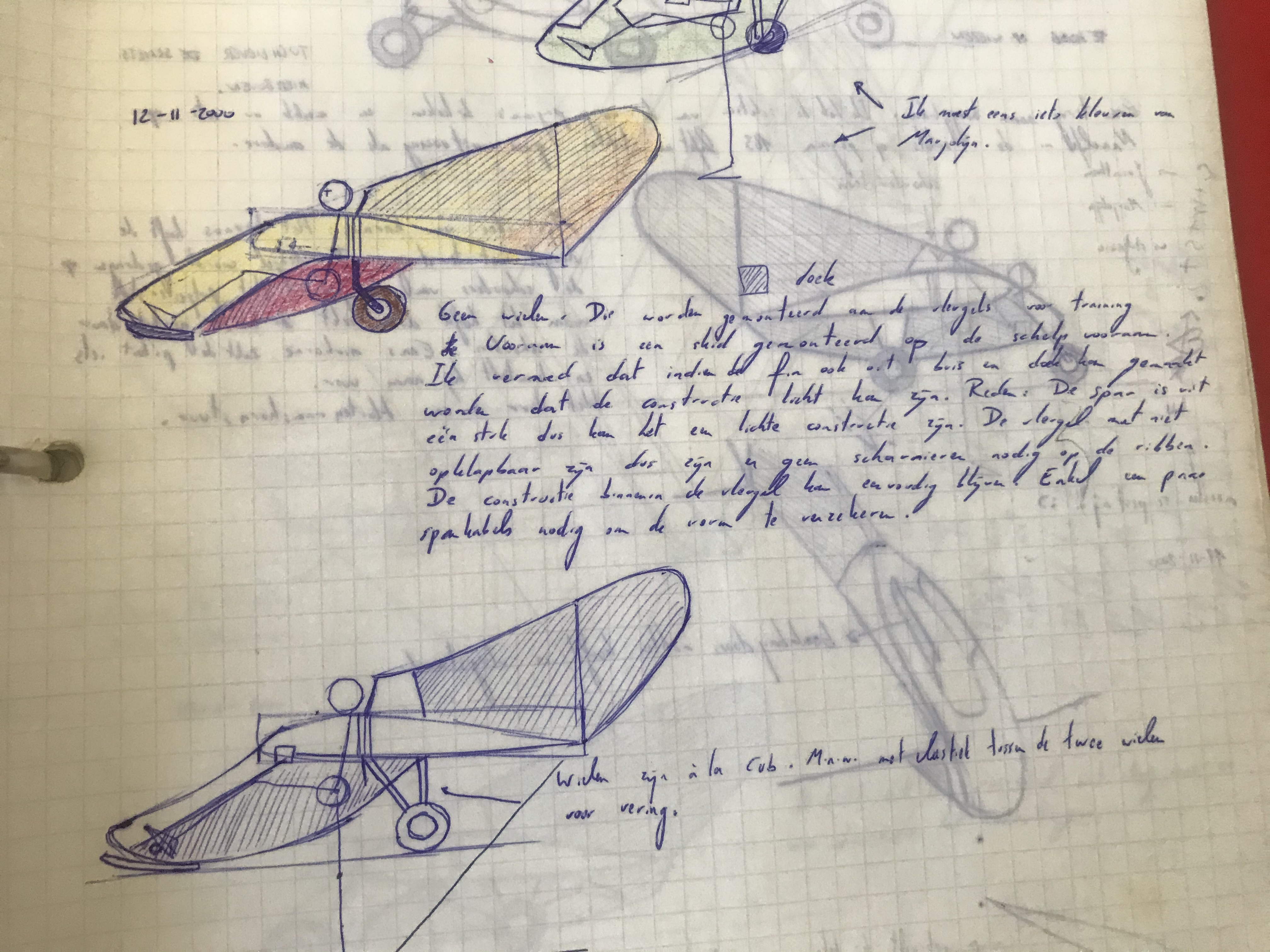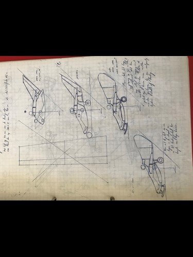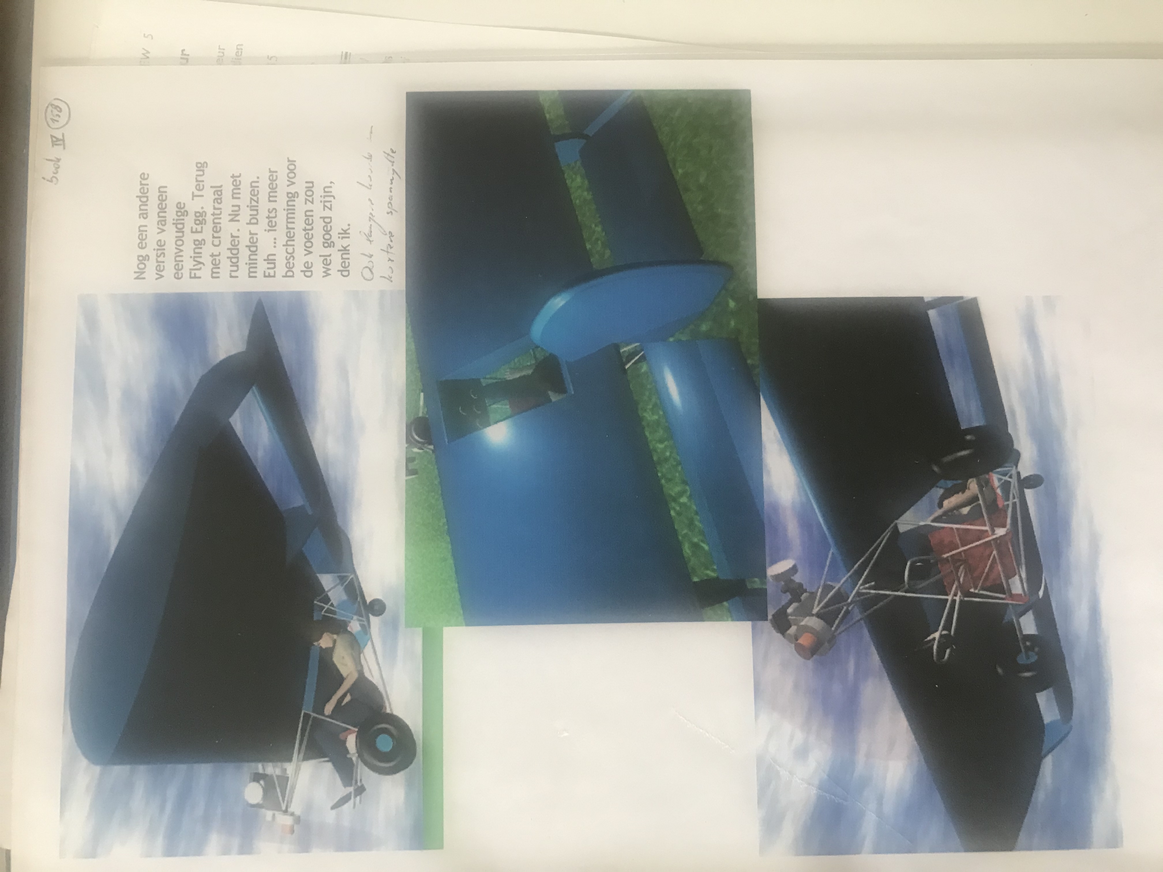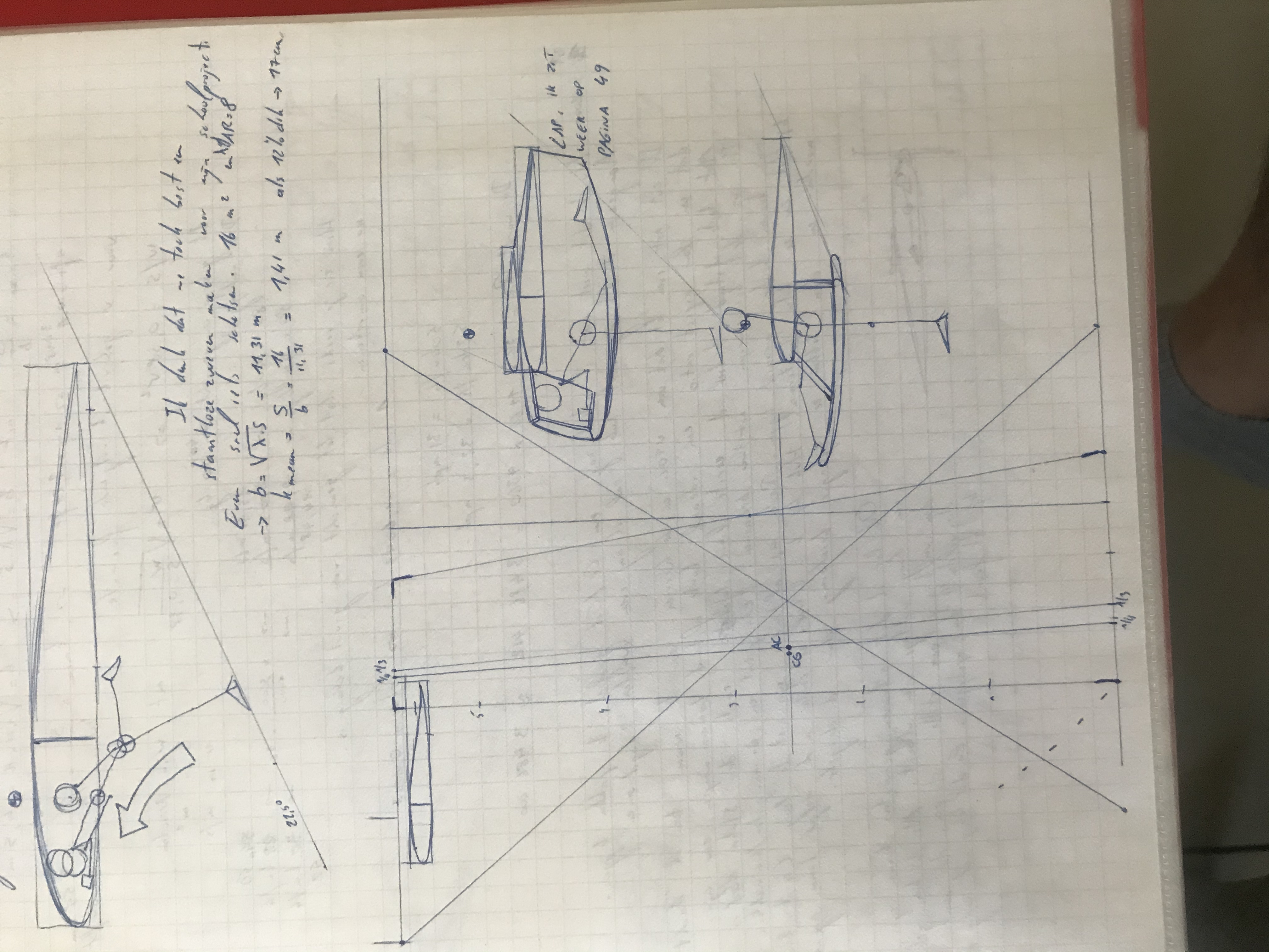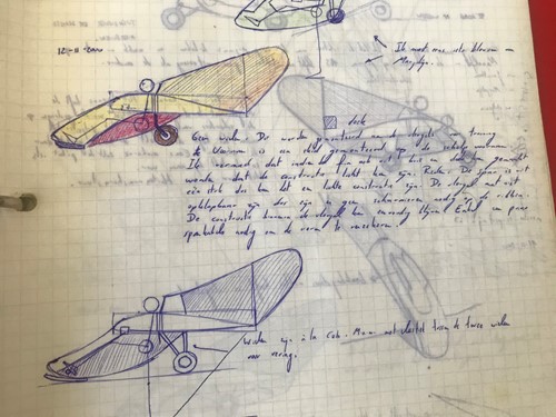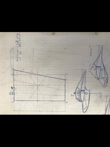 Now this design was only mentioned once in my draftbook. But ... it has maybe a future. Soooo basic. Love it! The pilot is seated with his eye line just under the wing. Just like in the SWIFT. The structure around him is also inspired by the cage of the SWIFT. A small engine at the front with folding prop might be enough to get this glider airborne and soar once at height. I was during drawing this draft concerned about how to get in the cockpit. Now i would say: EASY! The uuupersurface of the wing between front spar and rear spar is transparent and removable. You slide in from the top. Shoudl be possible. MAN, THIS THING IS SUPER BASIC. Just a central wheel to make it take off. During roll out you can use feet to keep wings level a bit. If canopy is totally enclosed, the panels next to feet can be bombbaydoors to make it possible to get legs outside. I have seen systems like that on totally enclosed recumbent bikes. So ... it should be possible to make that light weight.