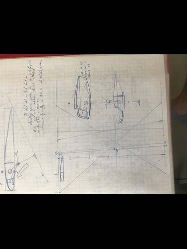 In the previous draft i use a inverted U-steering stick. Here i say two ways of steering that stick. Top one is not ideal. Might trigger bad steering when rolling over bumpy hill downwards or when in turbulent air. It is easy to let one side go down during turbulence or bumps in rolling downhill. So i prefer the use of a different hinge to steer. See lower draft.