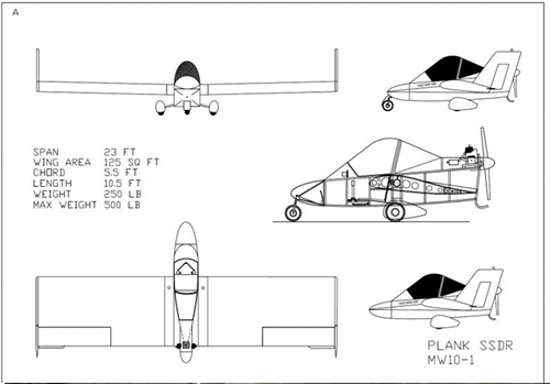 Goal of design: To produce a simple minimum microlight airplane that complies with the UK SSDR. Single seat deregulated rules.