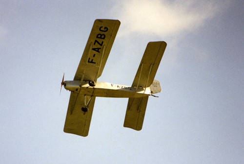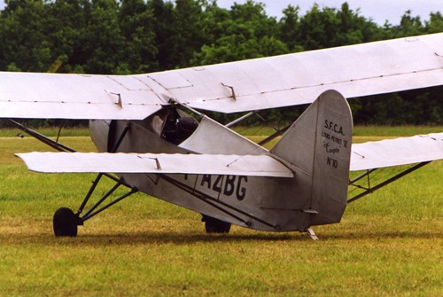 this motorized edition looks a lot like his glider. Same square fuselage with a slender triangle on top. A tube running over the pilot to connect front wing mounting points with the upper side of the rear body. Very rigid. And the triangle is so slender it gives not much view loss to the front.