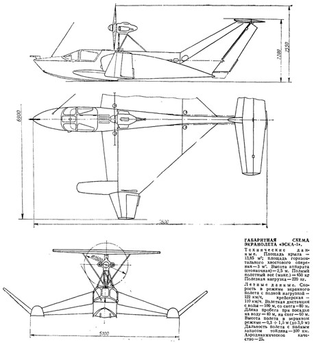 Maximum take off weight was 440 kg (970 lbs) of which 220 (485 lbs) were payload. The most effective flights were done at heights of 0,3 to 1,5 m (1 to 4,9 feet). But the Eska (with 50% payload) was capable to climb to 50 m (54,7 yard) to go over obstacles. Fully loaded it could get a speed of 122 km/h (76 mph) in ground effect. Range was 300-350 km (186 - 218 miles).