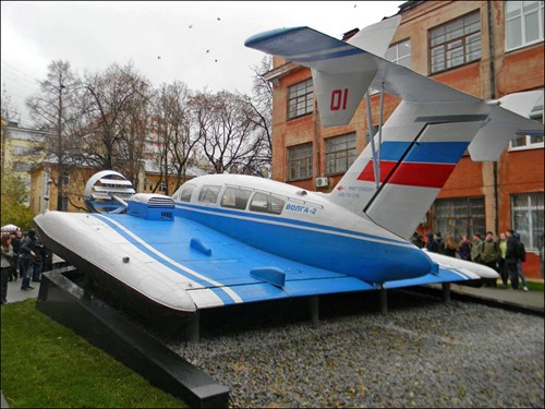 The Wolga-2 was used from 1979 to 2000 to cross rivers or lakes. It could carry 8 passengers. Was powered by two 150 HP engines. There were fins just behind the props to guide the blown air.